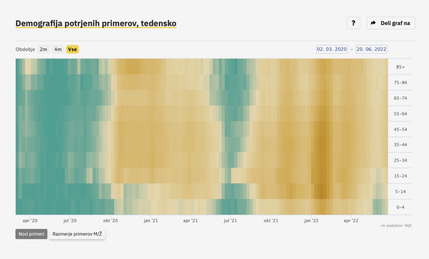 Ste jih kot izrazno sredstvo izbrali tudi zato, ker z infografiko v današnjem svetu najlažje lažemo? Malo ljudi si ogleda vir podatkov, skalo, legendo, obdobje, razpon, skratka – kontekst. Ali infografika že vnaprej vzbuja zaupanje?Zala: Vsekakor. Meni se zdi še bolj pomembno to, da bo infografika vedno prijetna očem. Ne glede na to kaj prikazuje, na primer število avtomobilskih nesreč, bo vedno lepo zgledala. Sad stats, happy graphics.